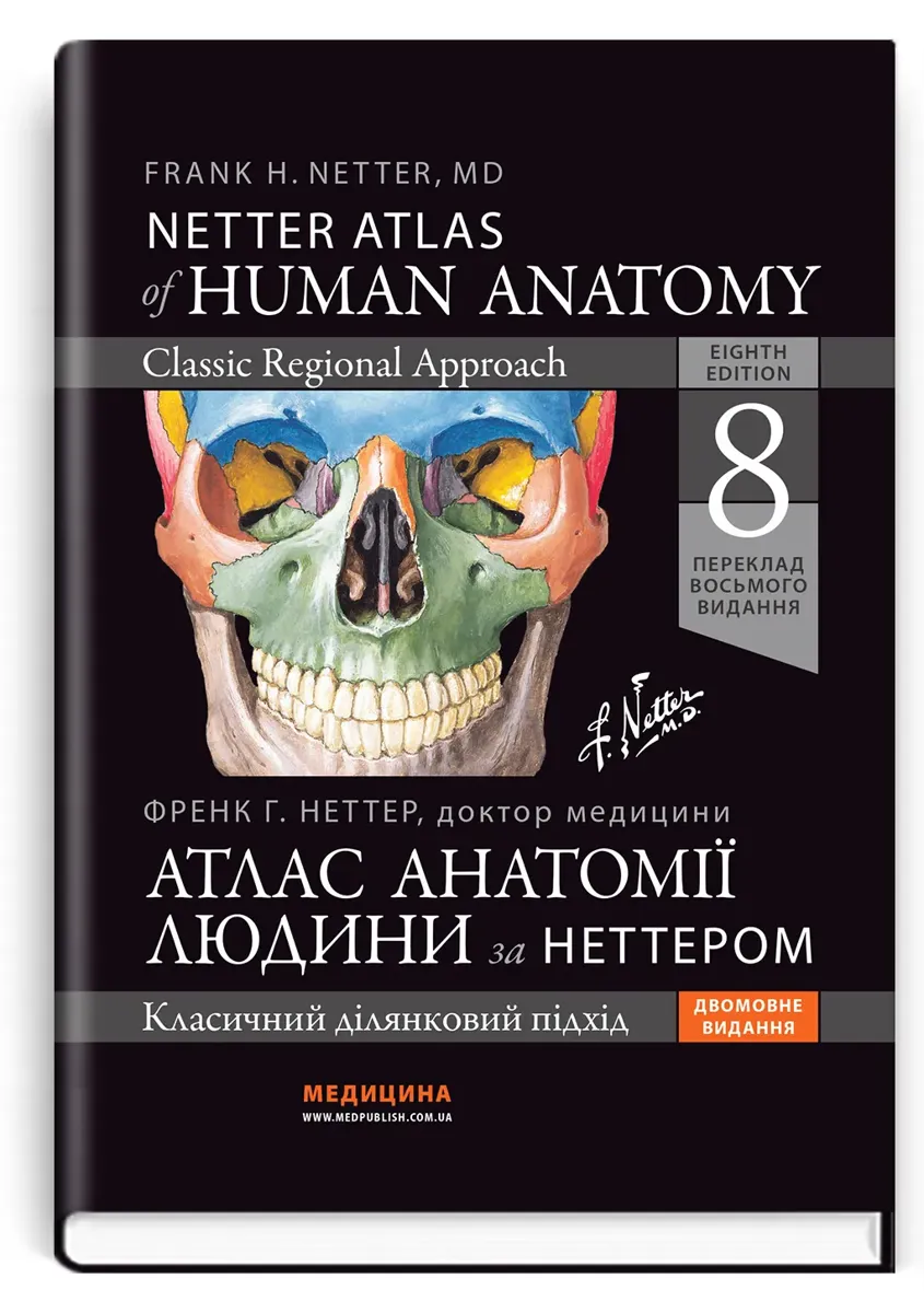 Виняткові та всесвітньовідомі клінічно значущі зображення в різних анатомічних проєкціях. Для студентів і лікарів, які вивчають анатомію, задіяні в анатомічному театрі, діляться досвідом із пацієнтами та поглиблюють власні знання. Атлас анатомії людини за Неттером з досконалою точністю, на думку клініцистів, ілюструє тіло людини від ділянки до ділянки та є унікальним серед анатомічних атласів. Він містить зображення, які акцентують увагу на анатомічних співвідношеннях, що є надважливими в навчанні та клінічній практиці. Проілюстрований лікарями-практиками для клініцистів, Атлас охоплює понад 550 високоякісних малюнків і значну кількість ретельно відібраних радіологічних зображень для загального ознайомлення. • Наведено широковідомі високоякісні зображення тіла людини з клінічного погляду, виконані доктором Френком Неттером і доктором Карлосом А.Г. Мачадо, одним із найвидатніших медичних ілюстраторів сьогодення. • Укладено під керівництвом експертів-анатомів і педагогів (Р. Шейн Таббс, Пол Е. Нойманн, Дженніфер К. Брюкнер-Коллінз, Марта-Джонсон Ґдовська, Вірджинія Т. Лайонс, Пітер Дж. Ворд, Тодд М. Гоґланд, Брайон Беннінґер) та міжнародної консультативної ради. • Запропоновано розгляд від ділянки до ділянки, включно із додатковими таблицями м’язів у кінці кожного розділу та стислим оглядом анатомічних структур з важливим клінічним значенням у загальних клінічних сценаріях. • Представлено нові ілюстрації доктора Мачадо з такими клінічно важливими ділянками, як порожнина таза, скронева та підскронева ямки, носові раковини тощо. • Додано нові таблиці нервів, зокрема черепних нервів і нервів шийного, плечового та попереково-крижового сплетень. • Використано оновлену англійську термінологію відповідно до другого видання міжнародного анатомічного стандарту Terminologia Anatomica та загальновживані в клінічній практиці епоніми.