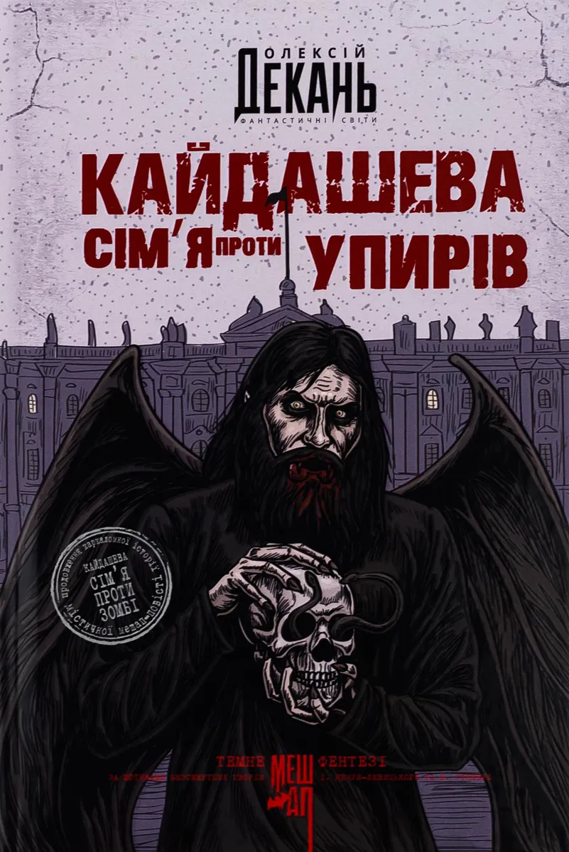 Темне фентезі. Літературний мешап за мотивами безсмертних творів І. Нечуя-Левицького та Б. Стокера. «Кайдашева сім’я проти упирів» — це продовження карколомної історії нашумілого бестселера Comic Con Ukraine 2021 «Кайдашева сім’я проти зомбі», яка мала кілька перевидань і встигла бути перекладеною англійською мовою.Цю історію можна читати навіть тим, хто не ознайомився з попередньою книгою. Хочете дізнатися про те, як царевбивця Омелько познайомився з молодою африканською відьмою, котрій дасть ім’я — Маруся?Бажаєте знову зустрітися з давніми знайомими — Карпом, Лавріном та Мелашкою і дізнатися про те, з якою новою небезпекою їм доведеться зіткнуться?Тоді ця історія саме для вас. Адже древнє зло блукає поруч. Воно шукає крові та помсти. Ще й діти Карпа підростають, і теж стають мимовільними учасниками темних сімейних справ. В цій новій книзі географія подій не обмежується лишень славнозвісним селищем Семигори, що на Київщині. Разом із героями читач зможе вирушити в подорож до Криму та відвідати таємничий мукачівський замок Паланок.Чи вдасться і цього разу Кайдашам перемогти у нерівному двобої зі смертю?