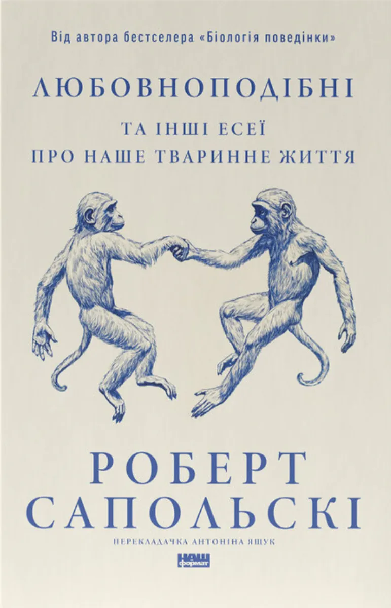 Яким чином незначні відмінності у навколишньому середовищі непомітно впливають на поведінку людини? Якою є анатомія поганого настрою? Чи зменшує стрес наш мозок? Чого саме про природу й виховання вчить нас «Список 50 найкрасивіших людей Америки», складений журналом People? Що робить один організм сексуальним для іншого? Хто стане переможцем у генетичній війні між статями? Ласкаво просимо до «Любовноподібних», цікавої і розважальної збірки есеїв про людину-тварину в усьому її захопливому розмаїтті, від Роберта Сапольскі, найпопулярнішого американського нейробіолога/приматолога. Книжка «Любовноподібні» складається з трьох розділів, кожен з яких присвячений Великому питанню природознавства, та пропонує жваве дослідження впливу генів і навколишнього середовища на поведінку; соціальних і політичних — і, звичайно, сексуальних — наслідків поведінкової біології; формування особистості суспільством. Від шлюбних ритуалів лугових собачок до релігійної практики у тропічних лісах, від секреції феромонів до жуків у мозку, Сапольскі блискуче синтезує передові наукові дослідження з іронічними, ерудованими спостереженнями про величезну складність простого людського буття. Вдумлива, захоплива та пронизана поп-культурою, ця збірка сподобається внутрішній мавпі у кожному з нас.