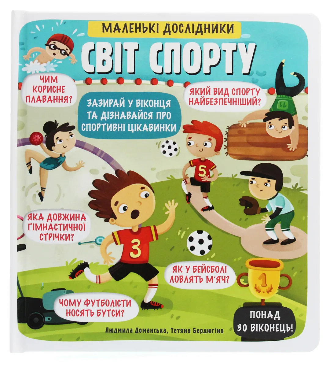 «Маленькі дослідники» вирушають у «Світ спорту». Книжка має понад 30 віконечок, які на кожній сторінці видання матимуть цікавинки про різні види спорту. Читачі дізнаються все про бейсбол, плавання, гімнастику, футбол, теніс, лижі та родео. Який з видів спорту найбезпечніший? В якій країні придумали футбол? Які тварини беруть участь в родео? Ці та інші цікаві факти чекають на вас у цій яскравій книжці! «Світ спорту» – це дев'ята книжка із улюбленої серії «Маленькі дослідники» у видавництві #книголав. Перше видання «Моє дивовижне тіло» стало абсолютним бестселером і поповнило домашні бібліотеки біля 30 000 українців, разом із ним до лідерів увійшли: «Світ тварин», «Динозаври», «Космічний світ», «Підводний світ» та «Транспорт».