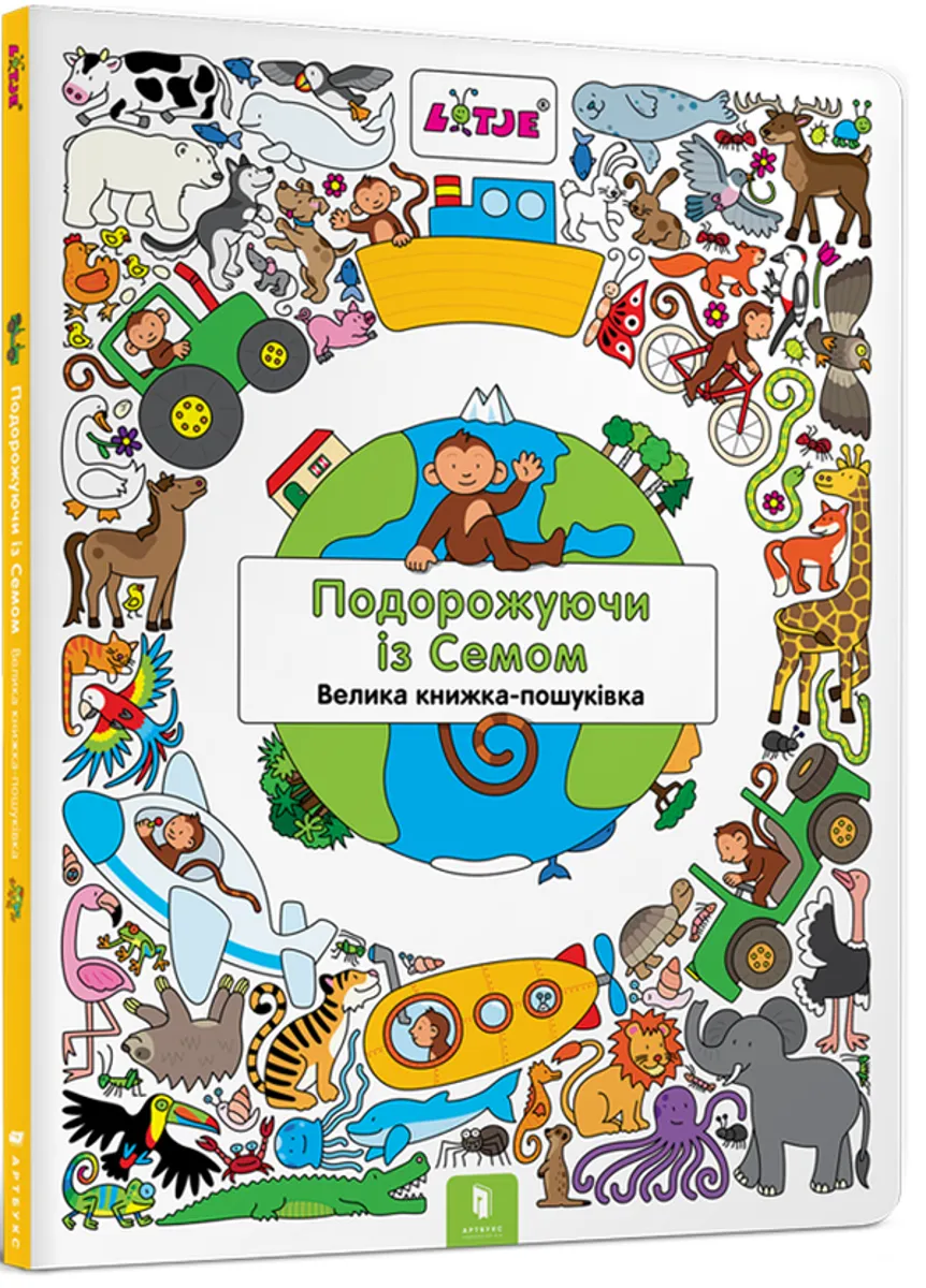 Мавпеня Сем обожнює пригоди. Він подорожує по всьому світу! Сем побував у найчарівніших куточках планети за допомогою різних транспортних засобів. І куди б він не їхав, йому щоразу вдається дізнатись щось нове. Сем зустрічає різних тваринок, відкриває для себе нові кольори, а також помічає відмінності у формах і розмірах. А ще він вчиться рахувати від одного до десяти. Чи вдасться тобі знайти блакитного жучка на кожному малюнку? Різнокольорова книга-пошуківка, яку можна із задоволенням розглядати упродовж годин.