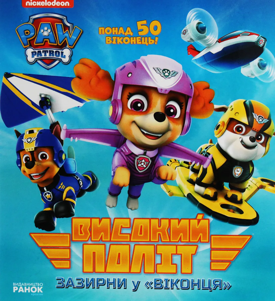 Це «Повітряний Патруль» — літачок твоїх улюблених персонажів. Візьми участь у нових пригодах героїв Щенячого Патруля! У цій захопливій книжці 50 віконець, їх можна відкрити і приєднатися до команди, щоб допомогти щенятам виконати завдання.