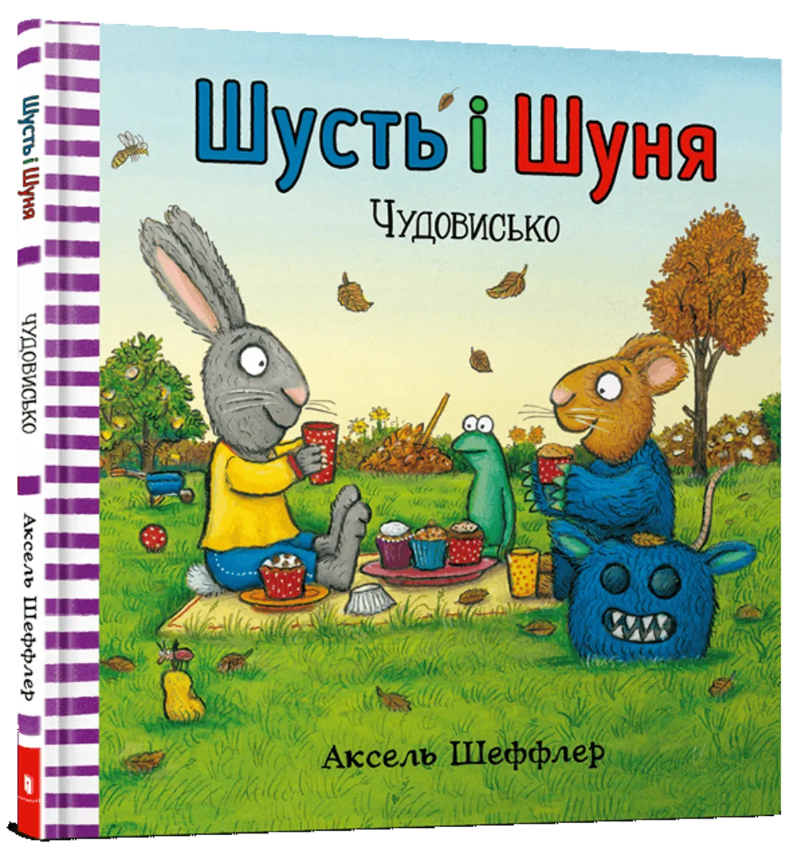 Веселих друзів Шустя і Шуню придумав і намалював геніальний Аксель Шеффер, один з найкращих дитячих ілюстраторів, «батько» знаменитого Груффало. Серія «Шусть і Шуня» присвячена важливим проблемам, з якими стикаються всі дітлахи молодшого дошкільного віку. Шуня тихо-мирно пекла кекси, аж раптом з’явилося чудовисько! Бідолашна Шуня! Вона дуже злякалась, але потім виявила, що то ніяке не чудовисько, а перевдягнений Шусть. Кумедна історія для найменших про те, як бути хоробрими і мінятися ролями. Ця яскрава й барвиста книжка відразу приверне увагу малюка, і він не захоче випускати її з рук. А головні герої цієї серії стануть найкращими книжковими друзями вашої дитини.