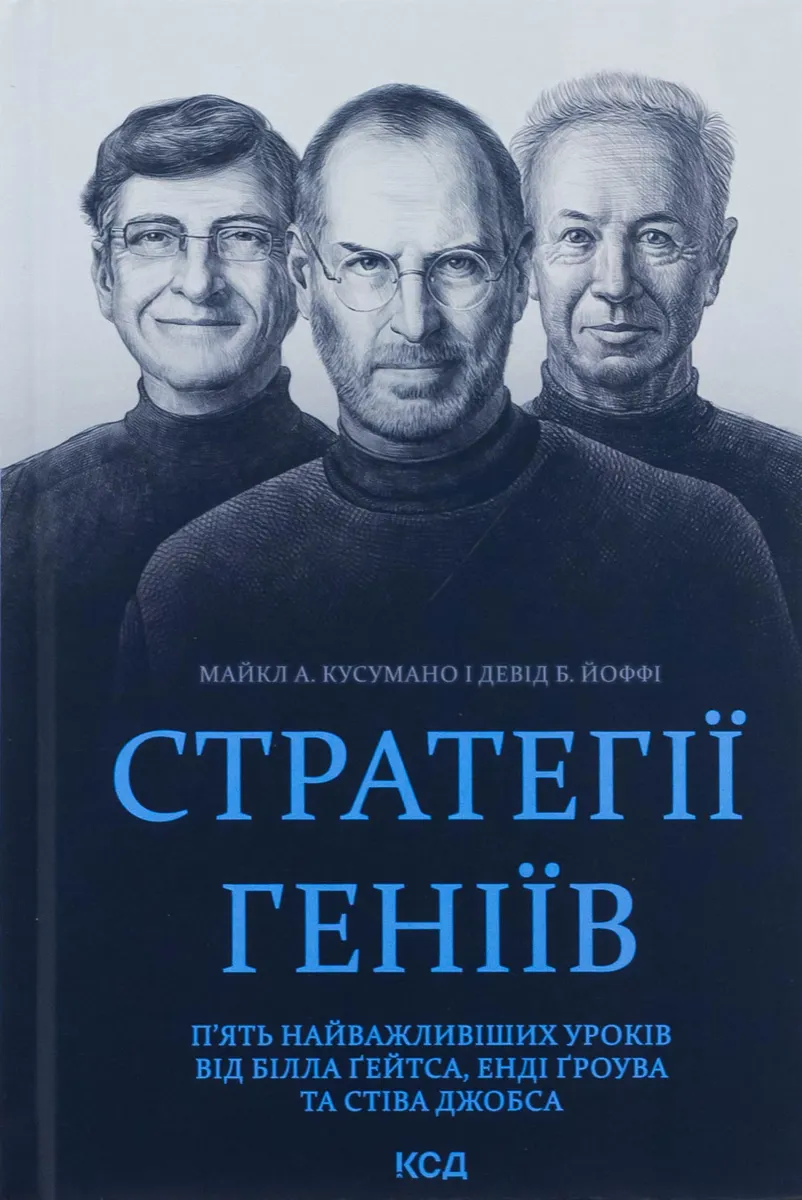 Девід Б. Йоффі — професор Гарвардської бізнес-школи, який часто публікується в New York Times, Wall Street Journal та Harvard Business Review. Свого часу наймолодший із членів ради директорів Intel, він автор та співавтор дев’яти книжок і більш ніж 100 досліджень із бізнес-стратегії та міжнародного управління, що продані накладом понад 3 мільйони примірників.Майкл А. Кусумано — почесний професор менеджменту Массачусетського технологічного інституту. Ресурс silicon.com називає його однією з найвпливовіших постатей у галузі технологій та ІТ. Він є автором і співавтором одинадцяти книжок зі стратегії, розробки продуктів та підприємництва в індустрії програмного забезпечення.Як стають видатними стратегами? Ґейтс, Ґроув і Джобс були першими «бізнес-зірками» у сучасному світі технологій. Аналізуючи їхній тридцятирічний досвід управління компаніями сукупною вартістю в 1,5 трильйона доларів — Microsoft, Intel та Apple, — автори цієї книжки сформулювали п’ять основних правил, що виявилися спільними у стратегічному плануванні цих гігантів ринку та дозволили випередити конкурентів, які цими принципами нехтували. Саме ці правила допомогли стільниковому телефону iPhone далеко посунути індустріальних гігантів Nokia та BlackBerry, крихітній компанії Microsoft із Сіетла взяти гору над своїм головним замовником — на той час найдорожчою у світі компанією IBM, а майже збанкрутілій фірмі Intel здолати японців, корейців та європейців у боротьбі за світове лідерство в новій революційній технології — виробництві мікропроцесорів. Ця книжка — путівник найкращими сторінками досвіду стратегічного планування, управління та практичної діяльності, який дозволить будь-кому стати ефективним стратегом.