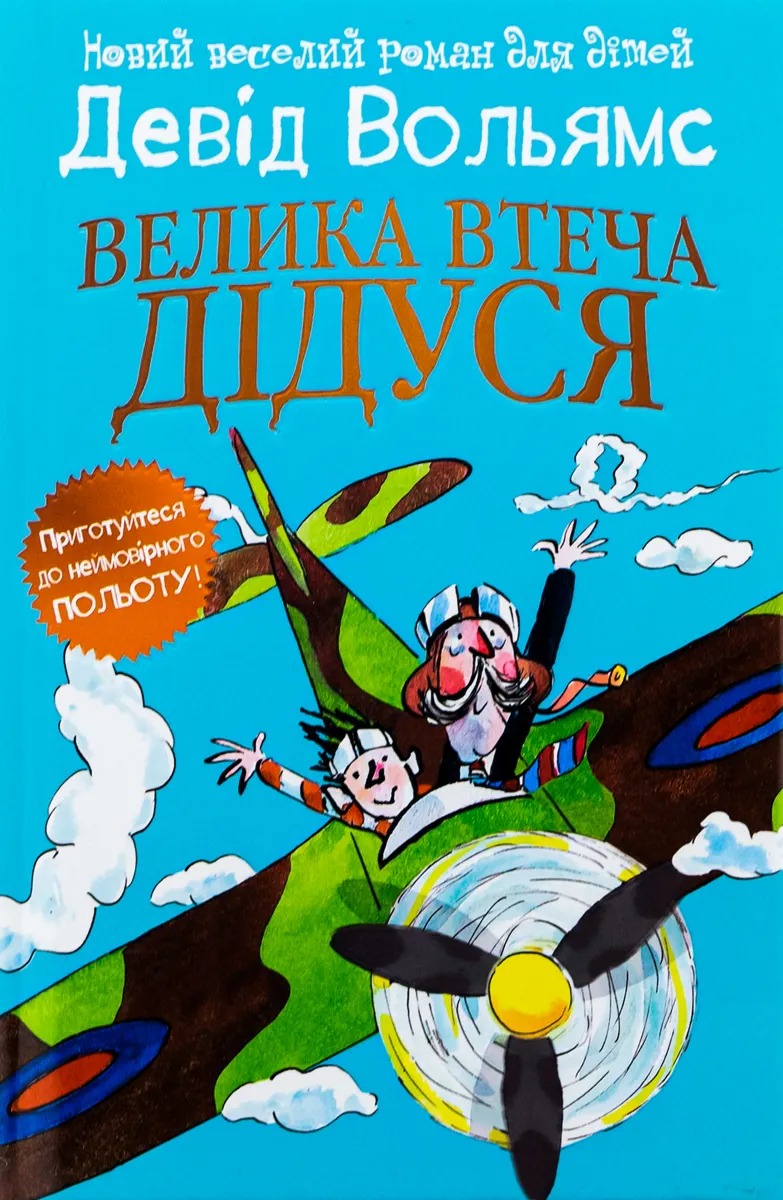 Дідусь - найулюбленіша людина Джека у світі. І не має значення те, що він ходить до супермаркету в хатніх тапках, і часто не памятає імені Джека. Та раптом дідусь починає вірити, що він повернувся у часи Другої світової війни, коли він був пілотом винищувача Спітфаєр. Дідуся відправили до дому для пристарілих, і тепер Джек мусить допомогти дідусю влаштувати втечу!Зворушлива історія маленького хлопчика та його улюбленого дідуся. Вирушайте разом із героями у неймовірну подорож літаком над Лондоном і здійсніть втечу з неймовірними пригодами, сповненими смішних ситуацій і людяності.Девід Вольямс - автор дитячих книг, який у 2008 році взяв літературний світ штурмом і продовжує завойовувати дитячі серця!