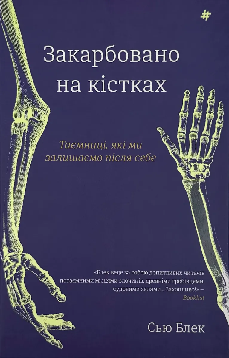 Кістки — мовчазні свідки людського життя. Кожна частина нашого тіла може розповісти історію. Те, що ми їмо, усе, що робимо, залишає сліди — повідомлення, які терпляче чекають місяцями, роками і навіть століттями, доки судово-медичний антрополог їх розшифрує. Всесвітньо відома судова антропологиня і професорка Сью Блек запрошує читачів у захопливу подорож людським тілом, від маківки до стоп, досліджуючи кістки голови, тулуба й кінцівок та розповідаючи історії людей, яким ці кістки належали. «Нам цікаво, якою була людина, що прожила це життя. Ми хочемо віднайти закарбоване на кістках, щоб розповісти історії тіл, а можливо, навіть повернути загиблим імена». Попри серйозність теми книжка написана з гумором. Кожна історія авторки сповнена поваги до людей і любові до власної справи…