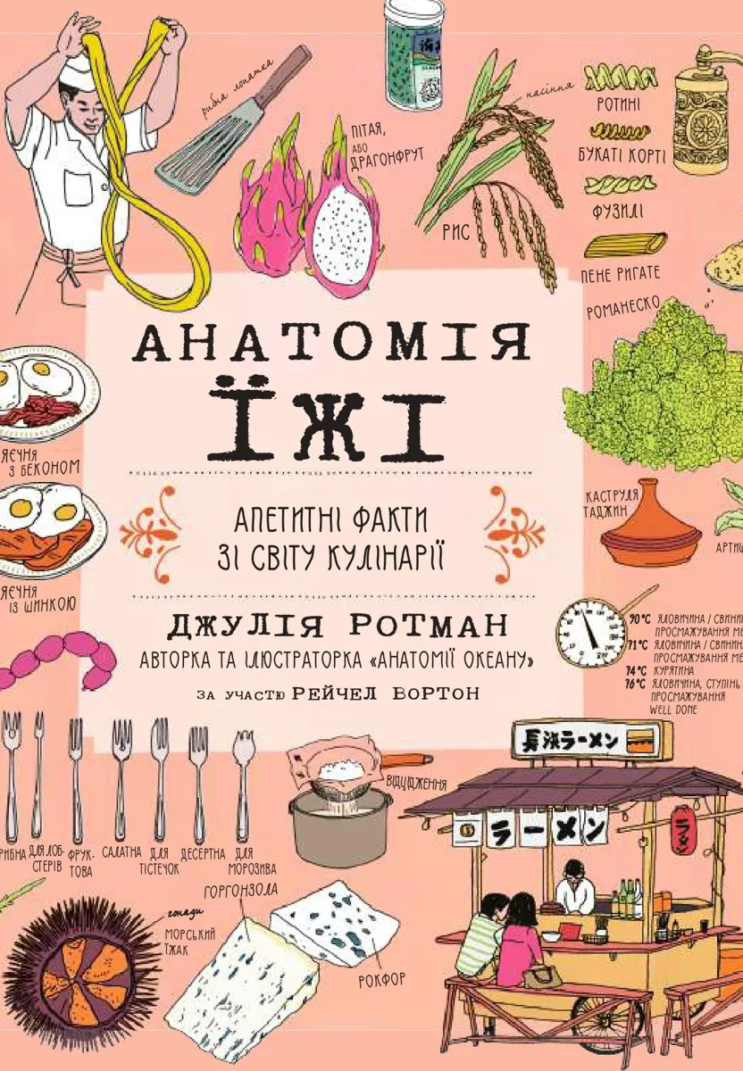 Чому сир має дірки? Як росте авокадо? Що таке умамі? Яка різниця між типами борошна? Як зберігають рибу на ринку? Джулія Ротман пояснює складні речі просто і з ілюстраціями від будови корови до історії хот-догів. Тут є трохи науки, трохи кулінарії, трохи фермерства, але все це подано легко, з гумором і креативністю. Ви дізнаєтесь про походження продуктів, як їх готують, зберігають і вживають у різних країнах.